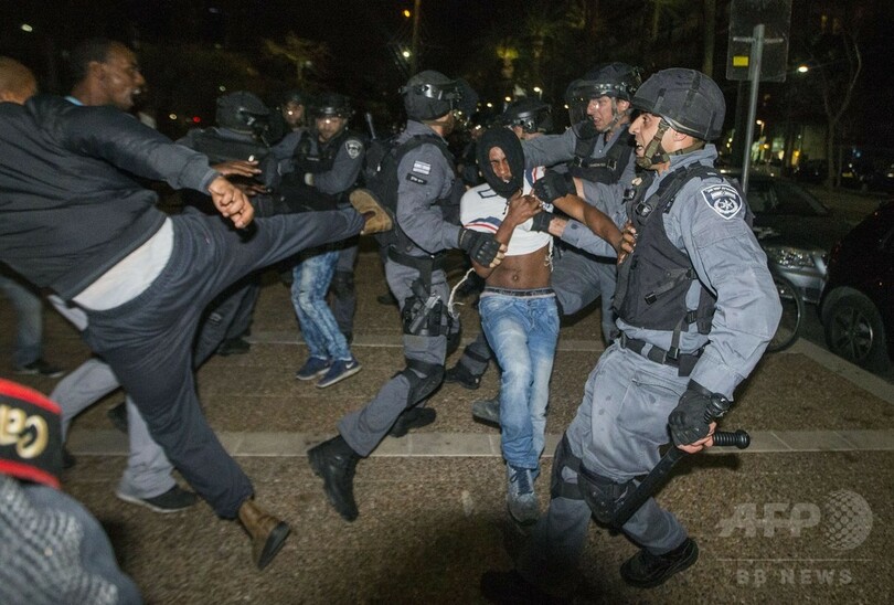 イスラエルでは先週、軍服を着たエチオピア系兵士が警察官2人から暴行される様子を撮影した動画が発端となってエルサレム(Jerusalem)で抗議デモが行われ、少数派のエチオピア系市民の間に長年くすぶっていた怒りが爆発。続いて3日にテルアビブ(Tel Aviv)で行われた抗議デモでは、一部が暴徒化した。