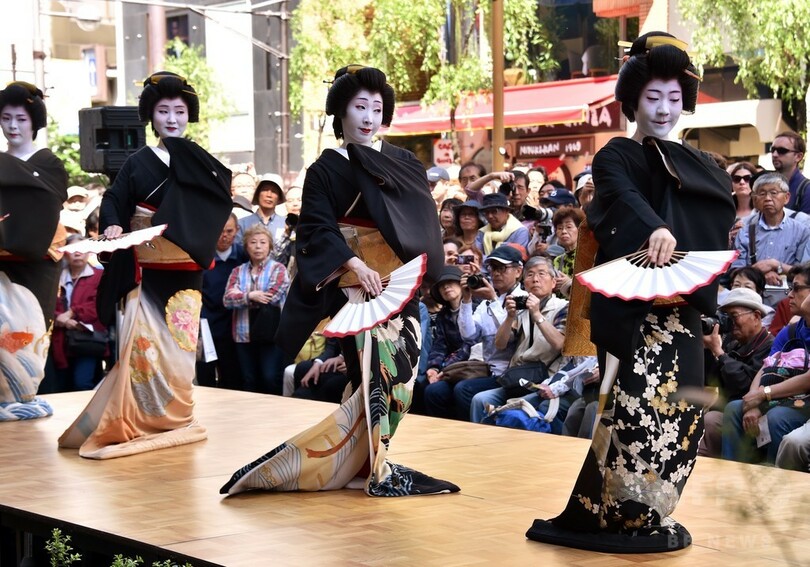 銀座柳まつり、芸者の舞に行楽客も釘づけ