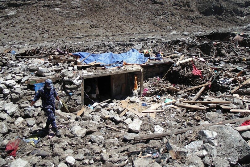 アスコラーニさんが村で屋外のカフェに立ち寄った時、地面が揺れ始め、巨大な岩が山あいの両側の崖に轟音を立てて落ちていった。「僕たちはあちこち走り回っていた。岩が落下し続けていたから、どこにも逃げようがない感じだった。ミニバンくらいの巨大な岩が建物を押しつぶして、木々を真っ二つに割っていった」と、カトマンズ(Kathmandu)でAFPの取材に応じたアスコラーニさんは説明した。