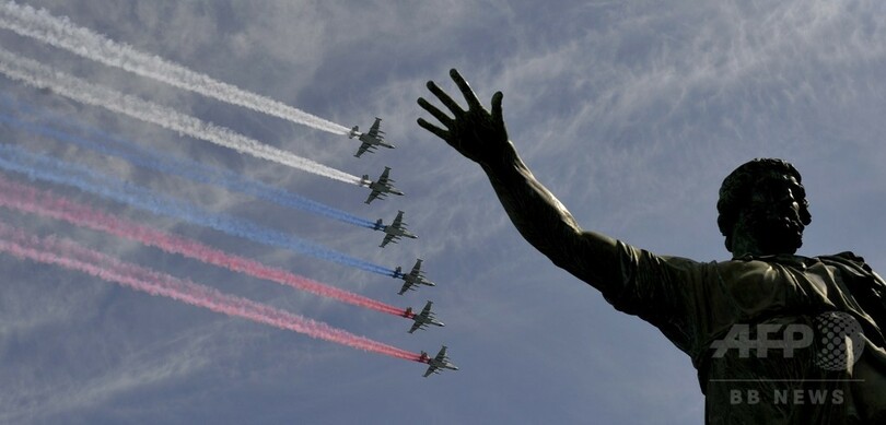【5月9日 AFP】ロシア・モスクワ(Moscow)の「赤の広場(Red Square)」で9日、第2次世界大戦(World War II)での対ナチス・ドイツ(Nazis)戦勝70年を記念する大規模な軍事パレードが行われた。記念式典には中国やキューバなど、ロシアの友好国の首脳らが出席したが、ウクライナ問題をめぐり対立している欧米諸国の首脳は出席を見送った。(c)AFP