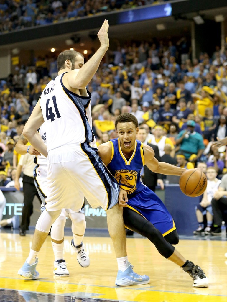 今シーズンの最優秀選手(MVP)に輝いたステフェン・カリー(Stephen Curry)を擁し、爆発的な攻撃力を持つウォリアーズは、グリズリーズとのシリーズ第1戦を制し、ポストシーズン開幕5連勝を飾っていた。