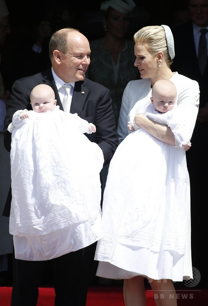 【5月11日 AFP】モナコ公国の元首アルベール2世公(Prince Albert II)とシャルレーヌ公妃(Princess Charlene)夫妻の双子の赤ちゃん、ジャック(Jacques)公子とガブリエラ(Gabriella)公女の洗礼式が10日、モンテカルロ(Monte Carlo)の大聖堂で執り行われた。(c)AFP