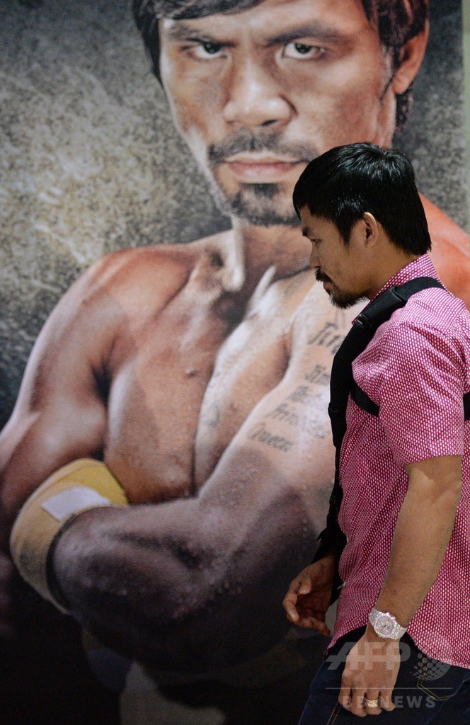 【5月13日 AFP】ボクシングの世界ウエルター級王座統一戦で、フロイド・メイウェザー・ジュニア(Floyd Mayweather Jr.、米国)に敗れたマニー・パッキャオ(Manny Pacquiao、フィリピン)が13日、米国から帰国した。