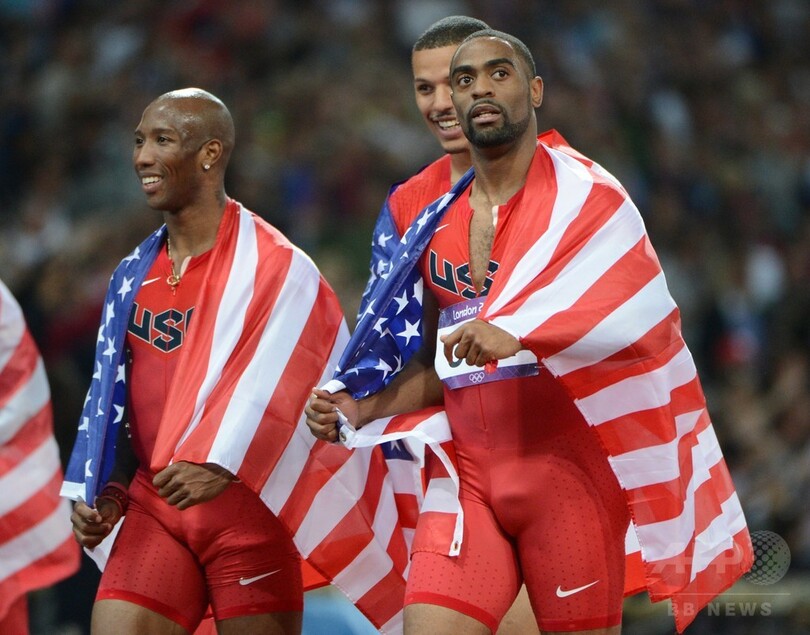 これにより、ゲイと一緒にロンドン五輪の男子4×100メートルリレーに出場したトレル・キモンズ(Trell Kimmons)、ジャスティン・ガトリン(Justin Gatlin)、ライアン・ベイリー(Ryan Bailey)および、予選を走ったジェフリー・デンプス(Jeffery Demps)、ダービス・パットン(Darvis Patton)はメダルを失うことになる。(c)AFP