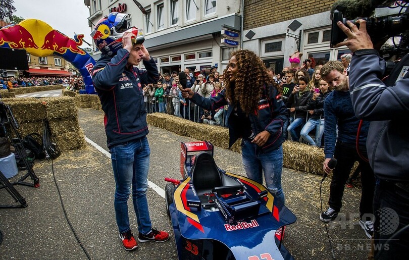 【5月17日 AFP】オランダ・ファルケンブルグ(Valkenburg)で16日、動力をもたない手作りの車で坂道を下る「レッドブル・ソープボックス・レース(Red Bull Soapbox Race)」が開催され、地元オランダ出身のF1ドライバー、マックス・フェルスタッペン(Max Verstappen)選手が所属チーム、トロ・ロッソ(Toro Rosso)のF1マシンそっくりにカラーリングを施された車で出走。麦わらを左右に積んで作られた全長350メートル、斜度12度のコースに挑戦した。(c)AFP