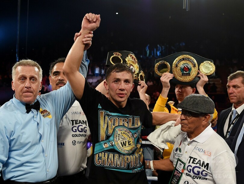ゴロフキンは試合後、次戦の対戦相手にはミゲル・コット(Miguel Cotto、プエルトリコ)かサウル・アルバレス(Saul Alvarez、メキシコ)を希望すると語った。(c)AFP
