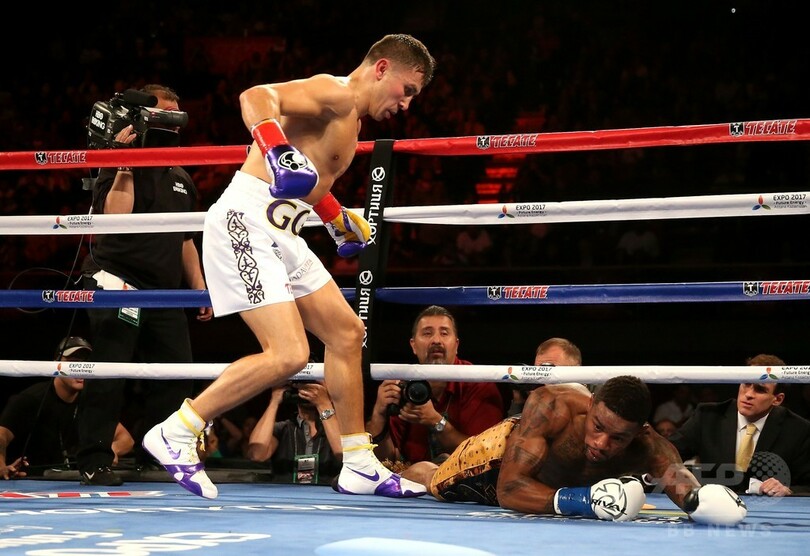 ゴロフキンは試合後、次戦の対戦相手にはミゲル・コット(Miguel Cotto、プエルトリコ)かサウル・アルバレス(Saul Alvarez、メキシコ)を希望すると語った。(c)AFP