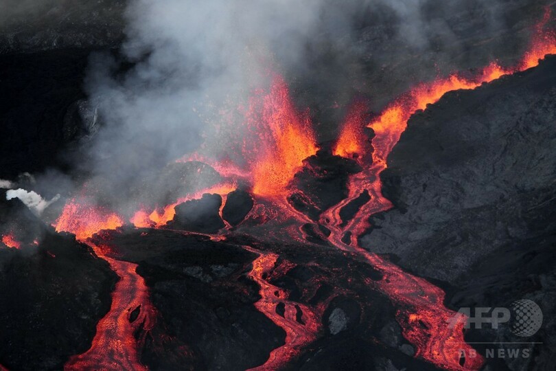 【5月18日 AFP】インド洋上のフランス海外県レユニオン(Reunion)島にあるフルネーズ火山(Piton de la Fournaise)が17日未明、噴火した。同火山の噴火は2月4日以来。(c)AFP