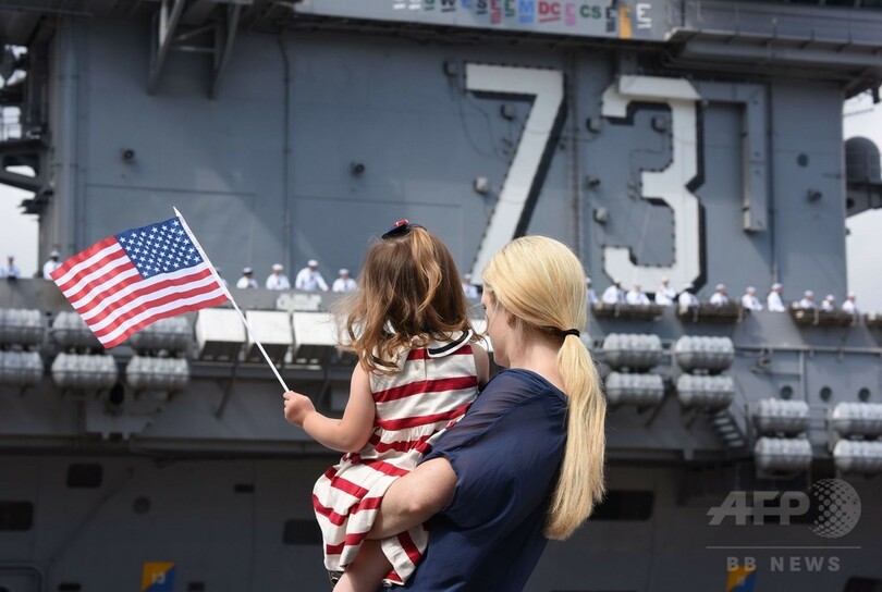 【5月18日 AFP】神奈川県横須賀市の米海軍横須賀基地に配備されてきた米原子力空母「ジョージ・ワシントン(USS George Washington)」が18日、長期間整備のために離日した。出港の際には米軍関係者や家族らが、手を振り見送った。同基地配備の原子力空母は今後、「ロナルド・レーガン(USS Ronald Reagan)」と交代する。(c)AFP