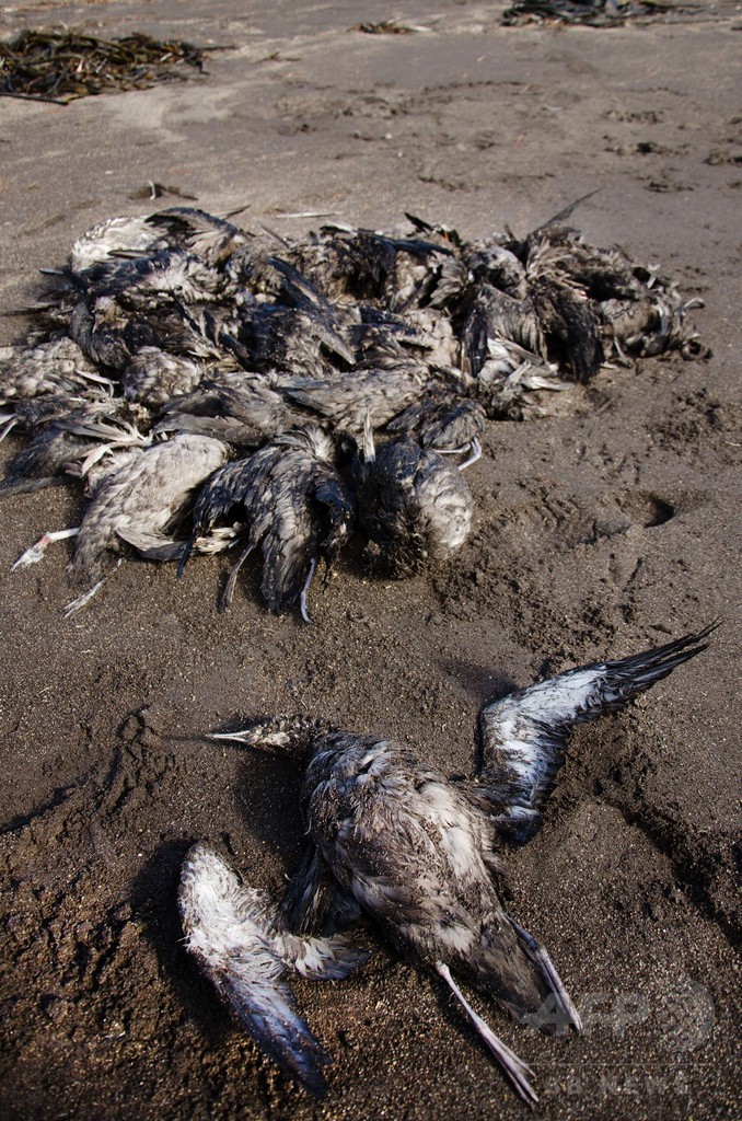 同地域では2010年にも、鳥数百羽が集団死しているのが発見されている。当局は当時、漁網にかかったことが原因と判断した。(c)AFP