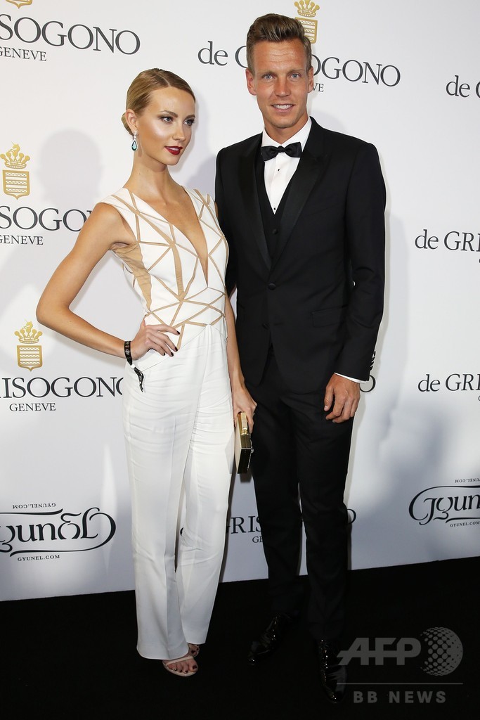 【5月20日 AFP】男子テニスのトマス・ベルディハ(Tomas Berdych、チェコ)は19日、恋人のエステル・サトロバ(Ester Satorova)さんと一緒に、第68回カンヌ国際映画祭(Cannes Film Festival)が開催されている南仏・カンヌ(Cannes)で行われたスイス高級時計・宝飾ブランド「ドゥ・グリソゴノ(De Grisogono)」のパーティーに出席した。(c)AFP