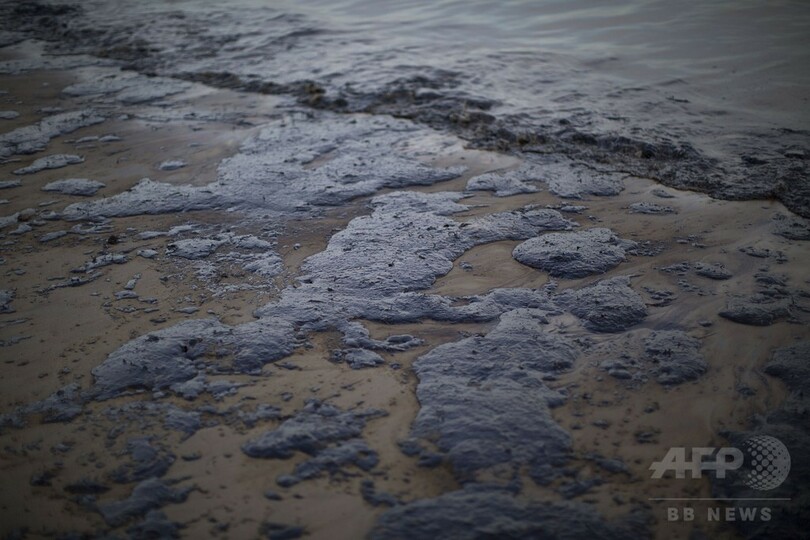 同社は石油の流出量は不明としているが、地元メディアでは推定2万1000ガロン(8万リットル)とも報じられている。(c)AFP