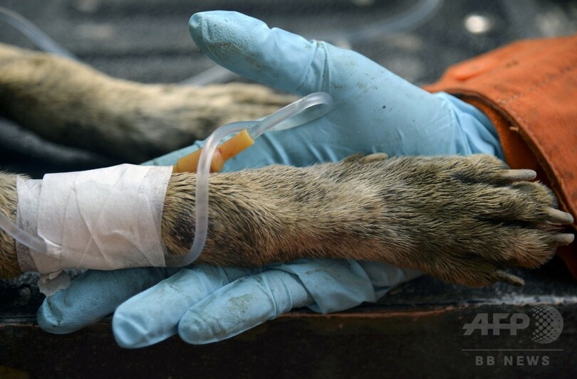 ニュース 社会 こぼれ話 地滑り2日後、がれきから犬救出 コロンビア 2015年5月22日 12:37 発信地:サルガル/コロンビア [ 中南米 コロンビア ] このニュースをシェア ‹ › ❮ 3/3 ❯ コロンビア北西部サルガルで起きた大規模な地滑りで、がれきから救出され治療を受ける犬の「エスペランサ(希望)」(2015年5月20日撮影)。(c)AFP/RAUL ARBOLEDA 画像作成中 ! 【5月22日 AFP】コロンビア北西部アンティオキア(Antioquia)州にある渓谷の町サルガル(Salgar)で起きた大規模な地滑りの現場で20日、被害者の捜索に当たっていた救助隊員が、土砂に押し流されたがれきの中から1匹の犬を救出した。犬は「エスペランサ(希望)」と名付けられ、救助隊員から治療を受けた。 18日未明に発生した地滑りでは、コロンビア当局によると、これまでに少なくとも84人が死亡、40人が負傷した。(c)AFP 社会 一覧へ> メディア・報道関係・法人の方向け 写真・動画 購入のお問合せ>