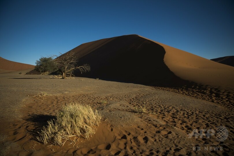 【5月26日 AFP】ナミビアのセスリム(Sesriem)に近いナミブ・ナウクルフト国立公園(Namib-Naukluft National Park)では、ソスフレイ(Sosusvlei)という砂漠と、立ち枯れた木が残る「デッド・フレイ(Deadvlei)」と呼ばれる場所が、不思議な魅力を放っている。(c)AFP