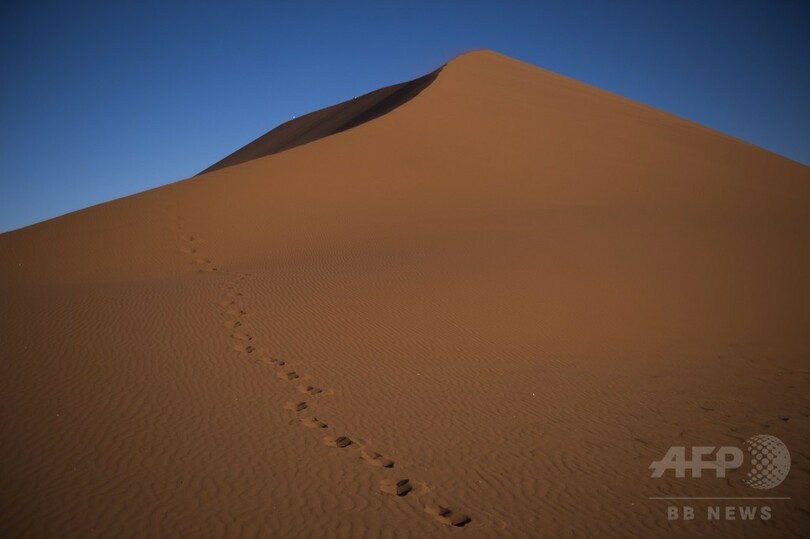 【5月26日 AFP】ナミビアのセスリム(Sesriem)に近いナミブ・ナウクルフト国立公園(Namib-Naukluft National Park)では、ソスフレイ(Sosusvlei)という砂漠と、立ち枯れた木が残る「デッド・フレイ(Deadvlei)」と呼ばれる場所が、不思議な魅力を放っている。(c)AFP