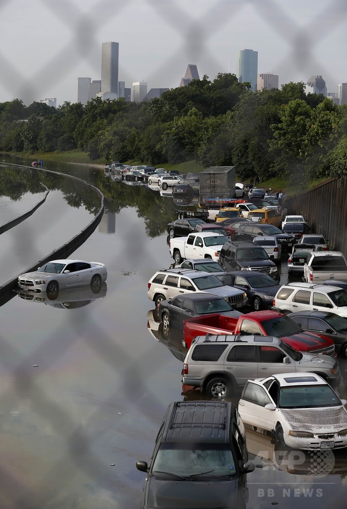 テキサス州ヒューストン(Houston)では、わずか数時間で250ミリ以上の降雨を記録。少なくとも過去10年で最悪の洪水を引き起こした。市内の路上には数百台の車が放置され、一部は完全に水没した。水位が上がる中、車に閉じ込められたり、自宅で孤立したりしている人たちが出た。