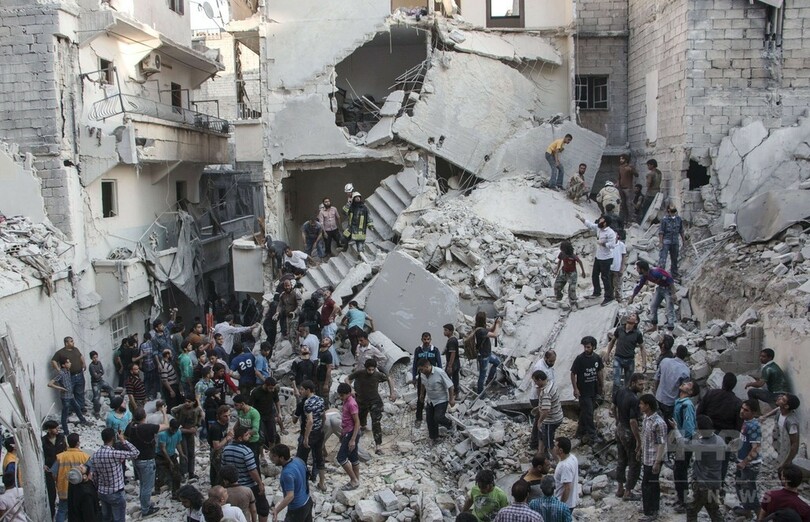 英国に拠点を置く非政府組織(NGO)「シリア人権監視団(Syrian Observatory for Human Rights)」によると、バッシャール・アサド(Bashar al-Assad)大統領が率いるシリア政府軍は先月30日、シリア北部アレッポ(Aleppo)のシャール(Shaar)地区でヘリコプターから「たる爆弾」を投下し、複数の子どもを含む民間人84人が死亡した。