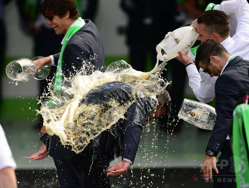 市役所で行われた祝賀会では、自身初のタイトルを獲得したディーター・ヘッキング(Dieter Hecking)監督に向けて4人の選手が巨大グラスに入ったビールをかけ、この日が26歳の誕生日だったバス・ドストが大好きなラップミュージックに合わせてダンスを披露する場面もあった。