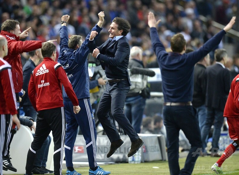ハンブルガーSVは、1963年のブンデスリーガ発足以来、一度も降格したことがない唯一の球団。しかし、2シーズン連続でプレーオフに回るなど、チームは綱渡り状態で残留している。(c)AFP