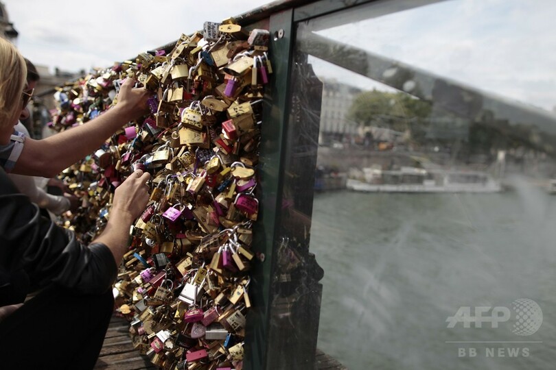 【6月2日 AFP】仏パリ(Paris)市を訪れる世界中の観光客が、セーヌ(Seine)川に架かるポンデザール(Pont des Arts)橋などに掛けた「愛の南京錠」約100万個、総重量45トンを撤去する作業を市当局が1日、開始した。
