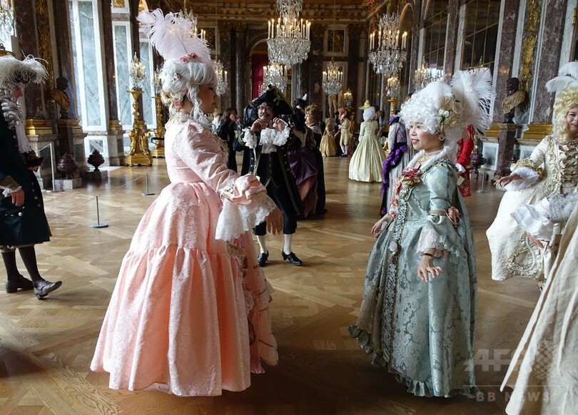 17世紀の衣装に身を包みヴェルサイユ宮殿に集う人たち