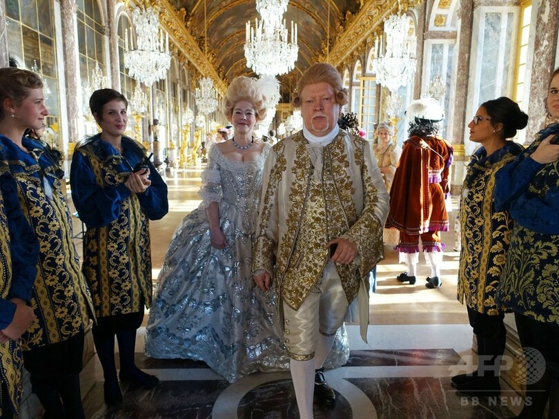 17世紀の衣装に身を包みヴェルサイユ宮殿に集う人たち