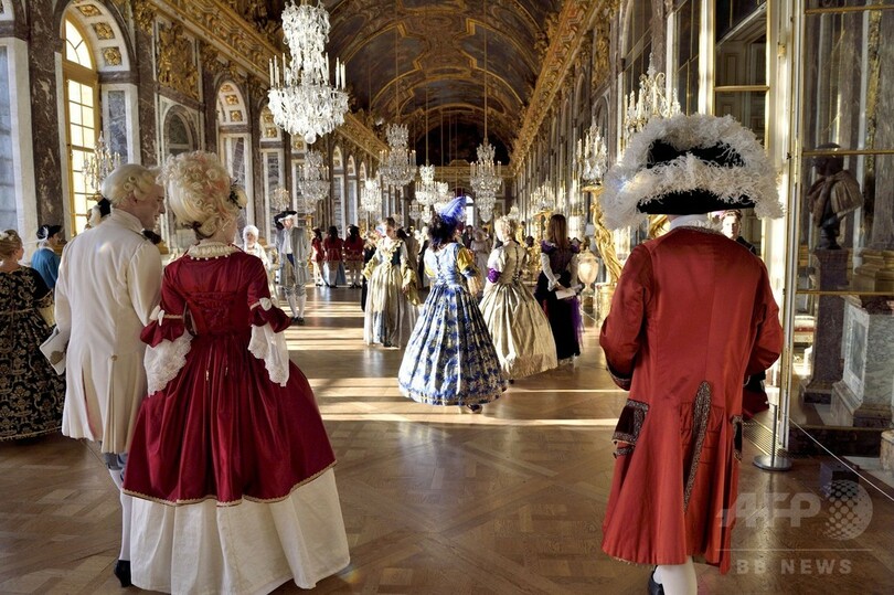 17世紀の衣装に身を包みヴェルサイユ宮殿に集う人たち