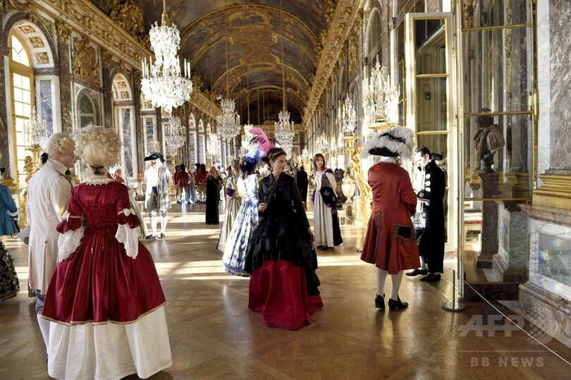 17世紀の衣装に身を包みヴェルサイユ宮殿に集う人たち
