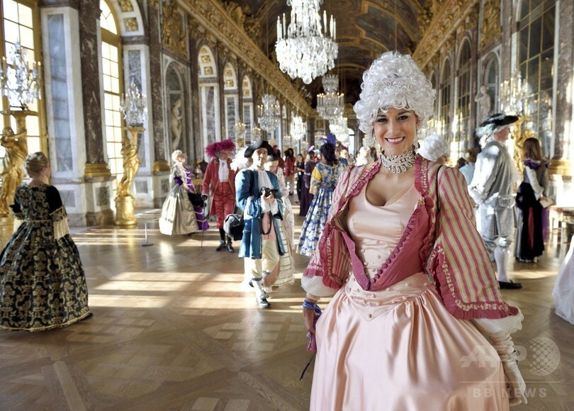 17世紀の衣装に身を包みヴェルサイユ宮殿に集う人たち