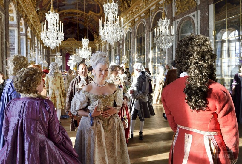 17世紀の衣装に身を包みヴェルサイユ宮殿に集う人たち