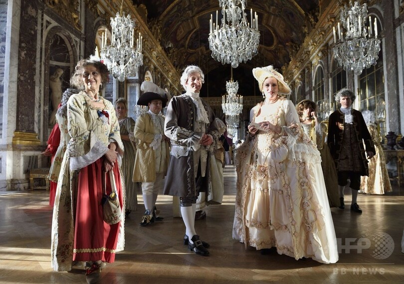 17世紀の衣装に身を包みヴェルサイユ宮殿に集う人たち