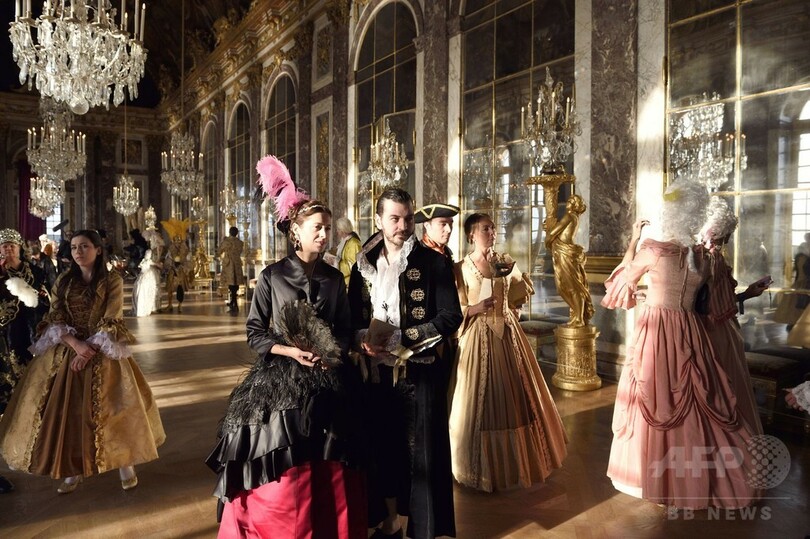17世紀の衣装に身を包みヴェルサイユ宮殿に集う人たち