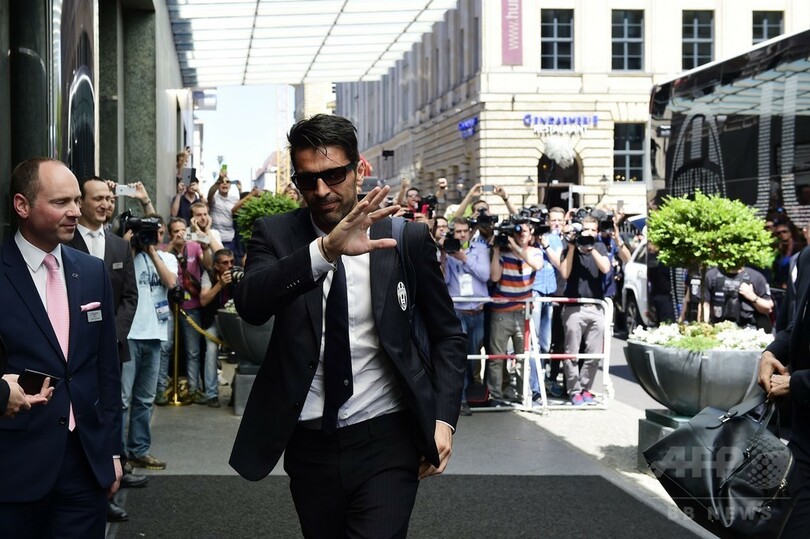 チャンピオンズリーグ12度目の挑戦で初優勝を目指すGKジャンルイジ・ブッフォン(Gianluigi Buffon)は、ファンに手を振りながらホテルに入った。