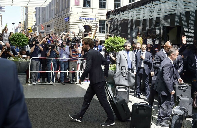チャンピオンズリーグ12度目の挑戦で初優勝を目指すGKジャンルイジ・ブッフォン(Gianluigi Buffon)は、ファンに手を振りながらホテルに入った。