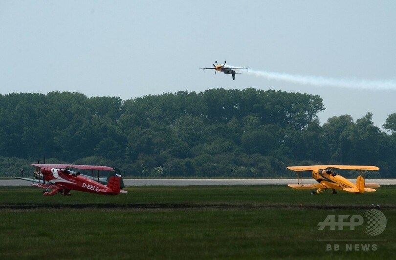 【6月8日 AFP】チェコ・パルドゥビツェ(Pardubice)の空港で7日、今年で25回目を迎える毎年恒例の航空ショーが開催され、同国のアクロバットチーム「フライングブルズ(Flying Bulls)」などが展示飛行を披露した。(c)AFP
