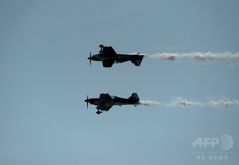 【6月8日 AFP】チェコ・パルドゥビツェ(Pardubice)の空港で7日、今年で25回目を迎える毎年恒例の航空ショーが開催され、同国のアクロバットチーム「フライングブルズ(Flying Bulls)」などが展示飛行を披露した。(c)AFP