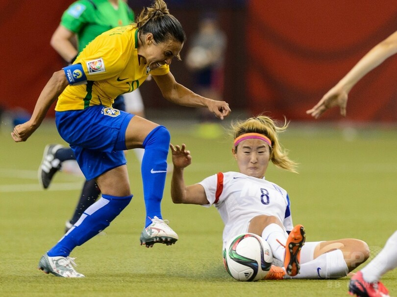 【6月10日 AFP】女子サッカーW杯カナダ大会(FIFA Women's World Cup 2015)は9日、グループEの試合が行われ、マルタ(Marta)が歴代最多となるW杯通算15得点目を挙げたブラジルは、2-0で韓国に勝利した。