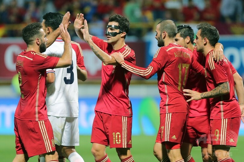 スペインは同30分にセスク・ファブレガス(Cesc Fabregas)が決勝点を挙げて白星を手にし、14日に行われる敵地での欧州選手権2016(UEFA Euro 2016)予選のベラルーシ戦に臨む。(c)AFP