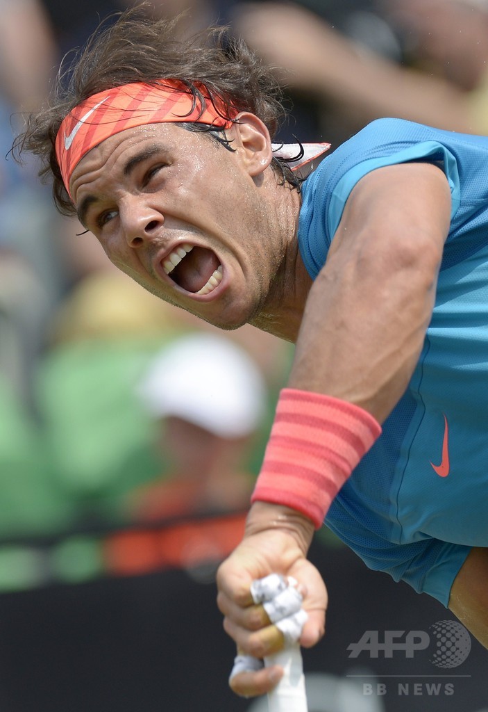 【6月13日 AFP】男子テニス、メルセデス・カップ(MercedesCup 2015)は12日、シングルス準々決勝が行われ、大会第1シードのラファエル・ナダル(Rafael Nadal、スペイン)は6-4、6-7、6-3で第5シードのバーナード・トミック(Bernard Tomic、オーストラリア)に勝利し、ベスト4進出を果たした。