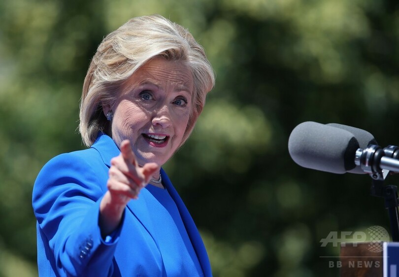 今年4月の出馬表明以降、クリントン氏の選挙運動には「クリントン財団(Clinton Foundation)」の慈善活動や講演報酬、私用メールの公務使用、国務長官時代の実績などを批判する動きが影を落としている。先週行われた米CNNの世論調査では、同氏が「不誠実で信用できない」とする回答が3月の49%から57%に上昇した。(c)AFP/Jennie MATTHEW