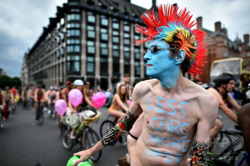 ロンドンに裸のサイクリスト集団、環境保護など訴え