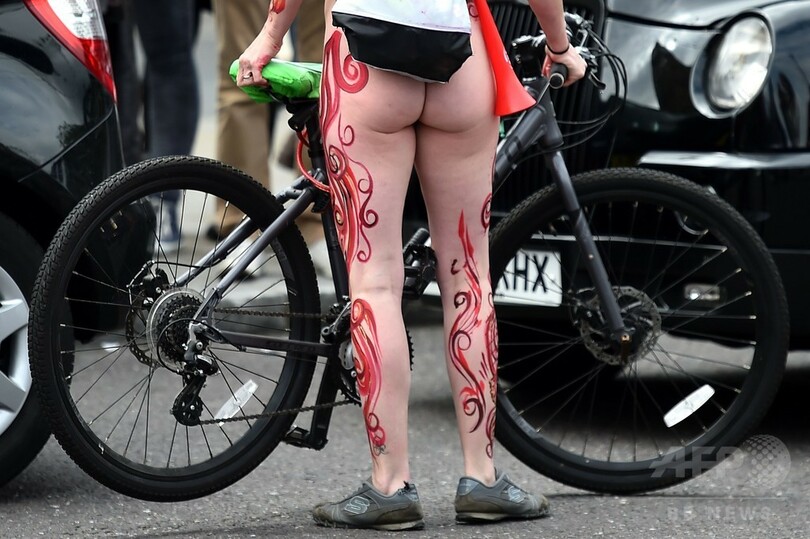 ロンドンに裸のサイクリスト集団、環境保護など訴え