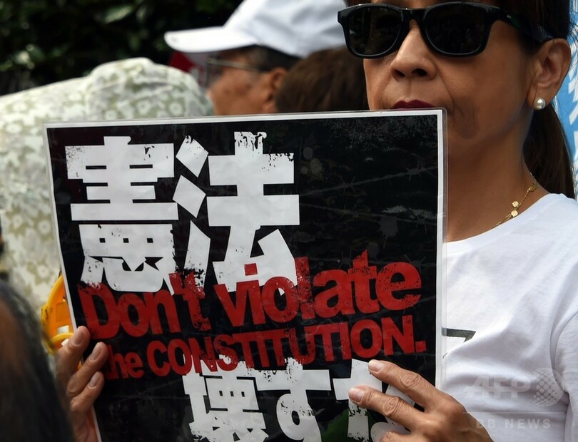 【6月15日 AFP】国会で審議が続いている安全保障関連法案に反対するデモや集会が14日、都内各所で行われた。国会議事堂周辺で行われたデモでは、「戦争させない」、「9条壊すな」などと書かれたプラカードを掲げ、約2万5000人の参加者らが抗議した。(c)AFP
