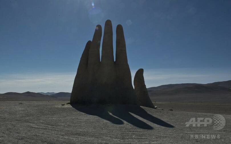 【6月15日 AFP】チリ・アントファガスタ(Antofagasta)郊外にそびえる高さ11メートルのモニュメント「La Mano del Desierto(砂漠の手)」。同国の彫刻家マリオ・イララザバル(Mario Irrazabal)氏が1992年に制作した。(c)AFP