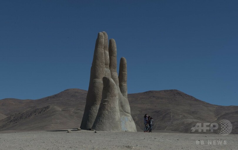 【6月15日 AFP】チリ・アントファガスタ(Antofagasta)郊外にそびえる高さ11メートルのモニュメント「La Mano del Desierto(砂漠の手)」。同国の彫刻家マリオ・イララザバル(Mario Irrazabal)氏が1992年に制作した。(c)AFP