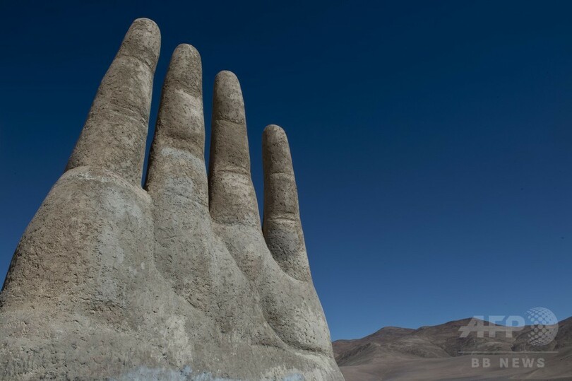 【6月15日 AFP】チリ・アントファガスタ(Antofagasta)郊外にそびえる高さ11メートルのモニュメント「La Mano del Desierto(砂漠の手)」。同国の彫刻家マリオ・イララザバル(Mario Irrazabal)氏が1992年に制作した。(c)AFP