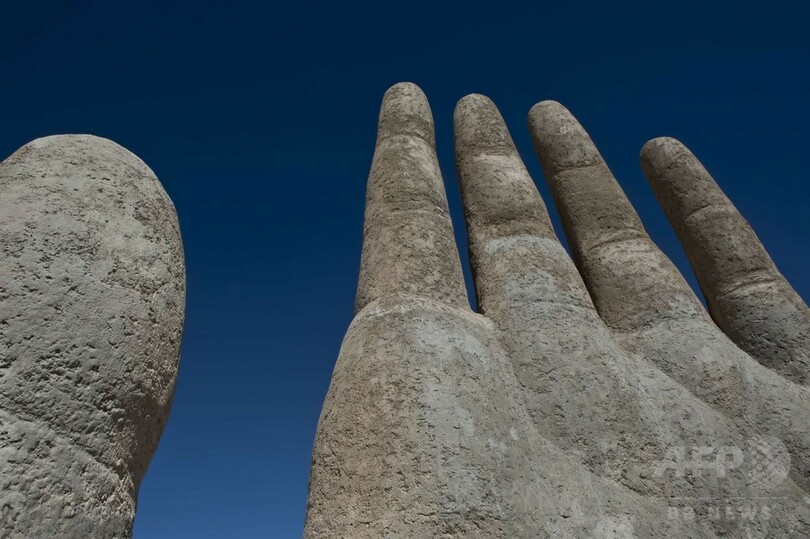 【6月15日 AFP】チリ・アントファガスタ(Antofagasta)郊外にそびえる高さ11メートルのモニュメント「La Mano del Desierto(砂漠の手)」。同国の彫刻家マリオ・イララザバル(Mario Irrazabal)氏が1992年に制作した。(c)AFP