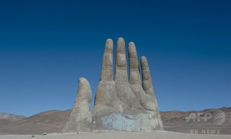 【6月15日 AFP】チリ・アントファガスタ(Antofagasta)郊外にそびえる高さ11メートルのモニュメント「La Mano del Desierto(砂漠の手)」。同国の彫刻家マリオ・イララザバル(Mario Irrazabal)氏が1992年に制作した。(c)AFP