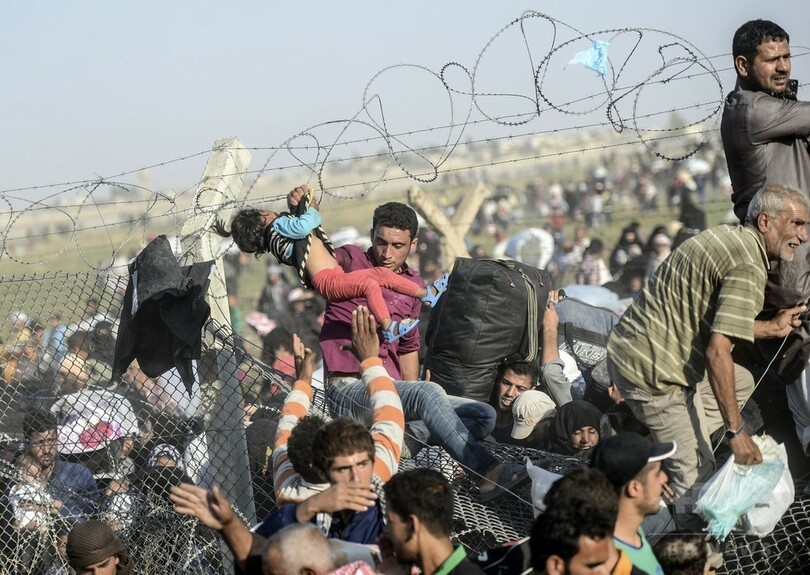 難民が国境のフェンスを越えて不法入国しトルコ軍が緊急対応するなど、混乱した場面も見られていた。現地にいるAFPの写真記者によると、難民らはトルコ南東部のシリアとの国境の町アクチャカレ(Akcakale)の国境検問所を通過しトルコ領内に流れ込んだ。難民の多くは荷物と小さな子どもたちを抱えていた。