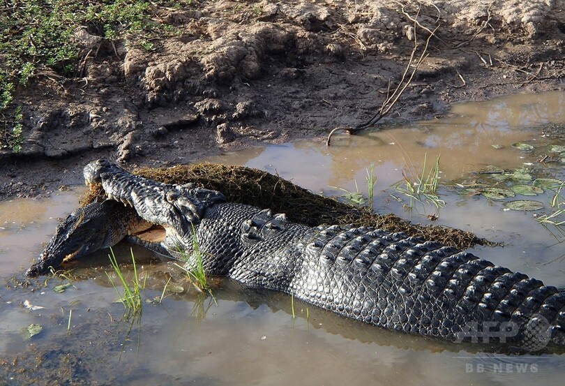 そこでは「マキシ(Maxi)」の名で知られる全長5メートルのワニが、同2メートルのワニを口にくわえていたのだ。「マキシの歯は、獲物の目や鼻先、頭部にしっかり食い込んでいた」とデービーズさんはAFPに語った。かみつかれたほうのワニは逃げ出そうとあがいていたという。